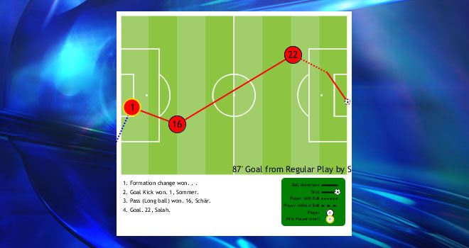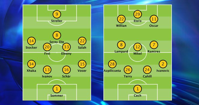 Basel were the attacking threat throughout the game and particularly in the first half, when they enjoyed a 58.3 % dominance of possession, stacked up seven corners and attempted nine shots. Salah, receiving passes inside left-back Cesar Azpilicueta, had been a constant menace and created two chances in the opening 45 minutes while also having two shots on target.